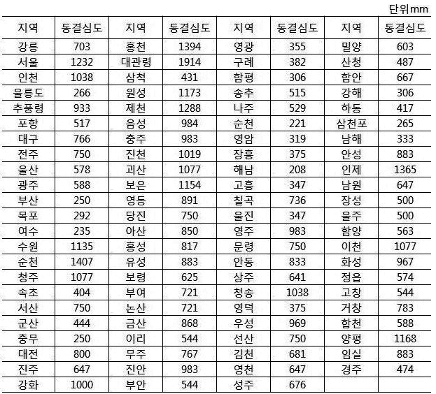 3. 전국 동결지수선도 및 최대 동결깊이