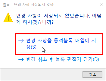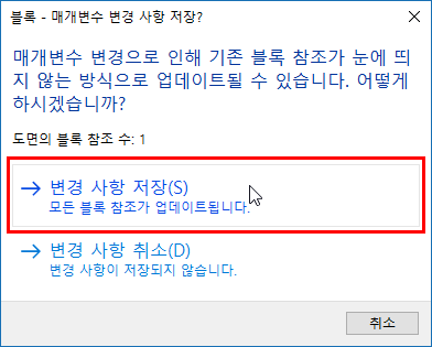 변경 사항을 동적블록-배열에 저장을 클릭합니다.