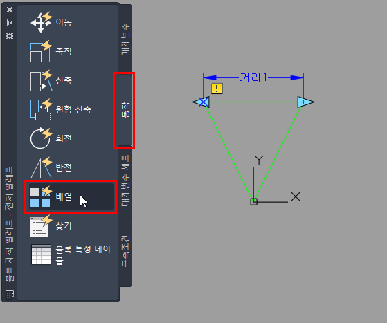 오토캐드의 동적 블록 중에서도 "배열"이라는 부분입니다.