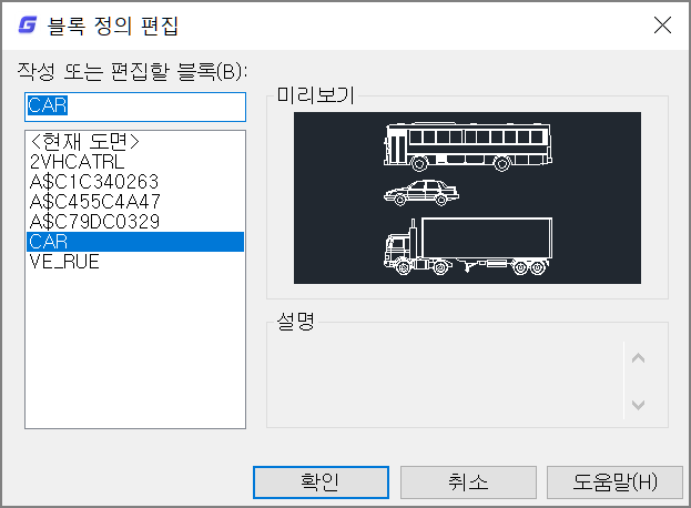 2. 블록을 두 번 클릭하거나 마우스 오른쪽 버튼 메뉴를 이용하여 블록 편집기(BEDIT)를 실행합니다.