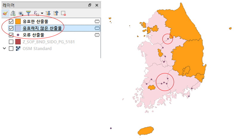 "무결성 검증"을 완료하게되면 유효한 산출물, 유효하지 않은 산출물, 오류 산출물 이렇게 3가지의 레이어가 생성됩니다.