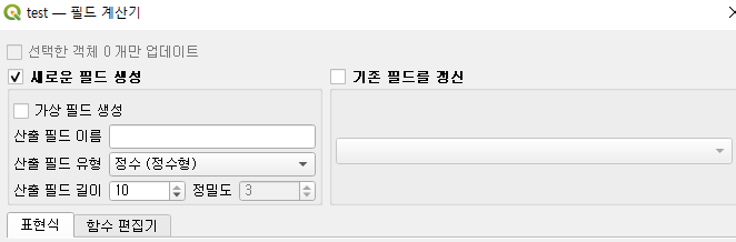 5. '새로운 필드 생성'과 '기존 필드를 갱신'이 있는데 원하는 대로 선택하시면 됩니다.