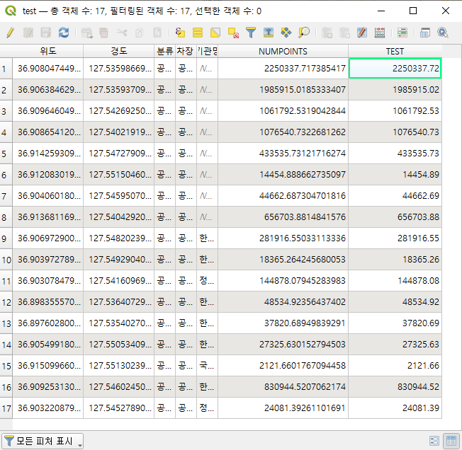 저는 'NUMPOINTS'필드에서 소수점 두번째 자리까지 남기는 반올림 연산을 실행하였으므로,