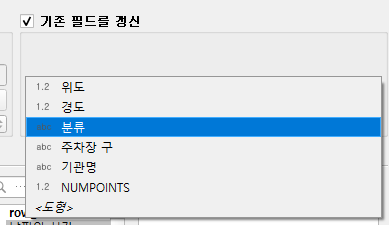 기존 필드로 갱신을 하면 아래와 같이 갱신할 필드를 선택하여 연산을 진행할 수 있게 됩니다.
