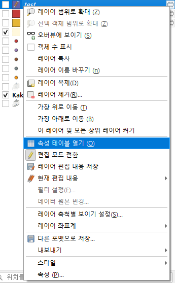 9. 정말 제대로 생성된 걸까? 하는 의문과 함께 확인하고 싶으시다면 '속성 테이블 열기'로 들어갑니다