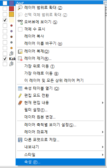 2. 계산을 원하는 레이어의 속성으로 들어갑니다.