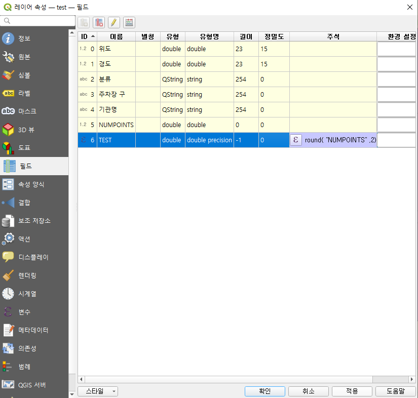 [QGIS] 필드 계산 및 추가하기