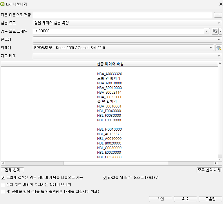 심볼모드가 없음으로 해야 면이 선으로 내보내짐