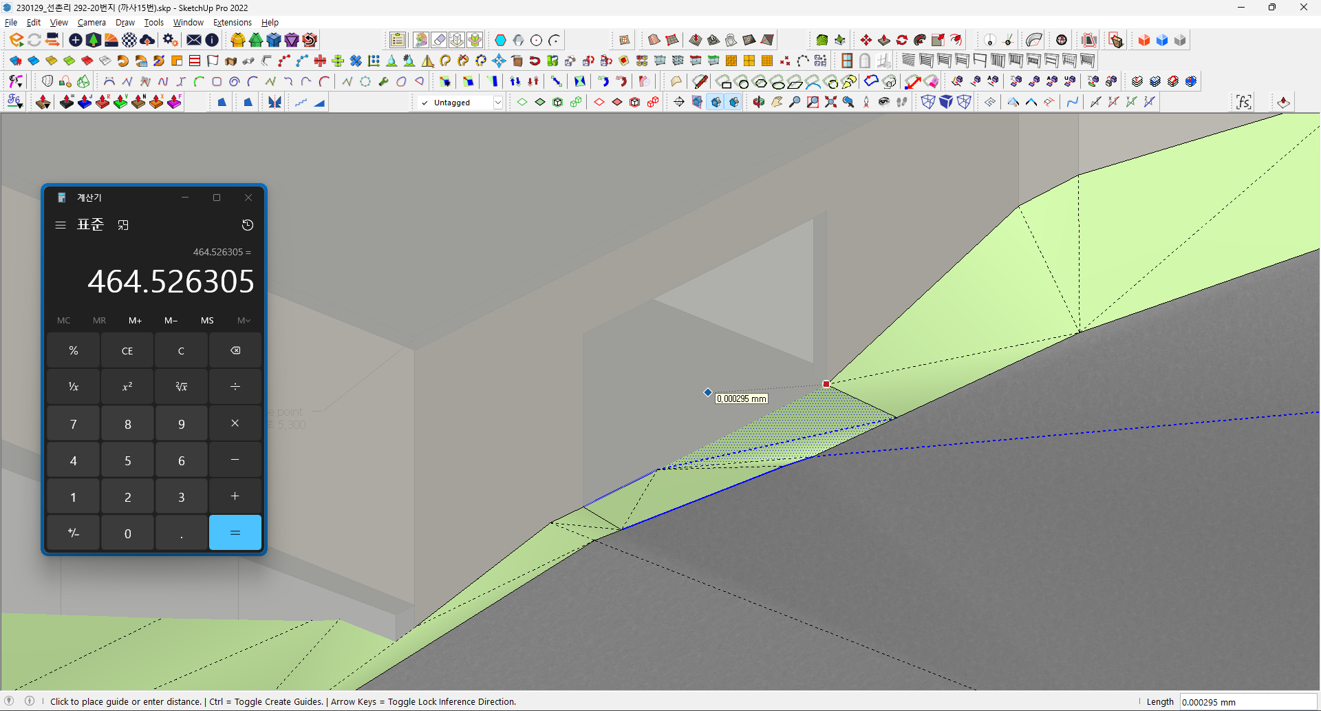 0.000000.. 이 나오면 좋겠지만 이렇게 미세한 오차가 생긴다 (멍청한 스케치업)